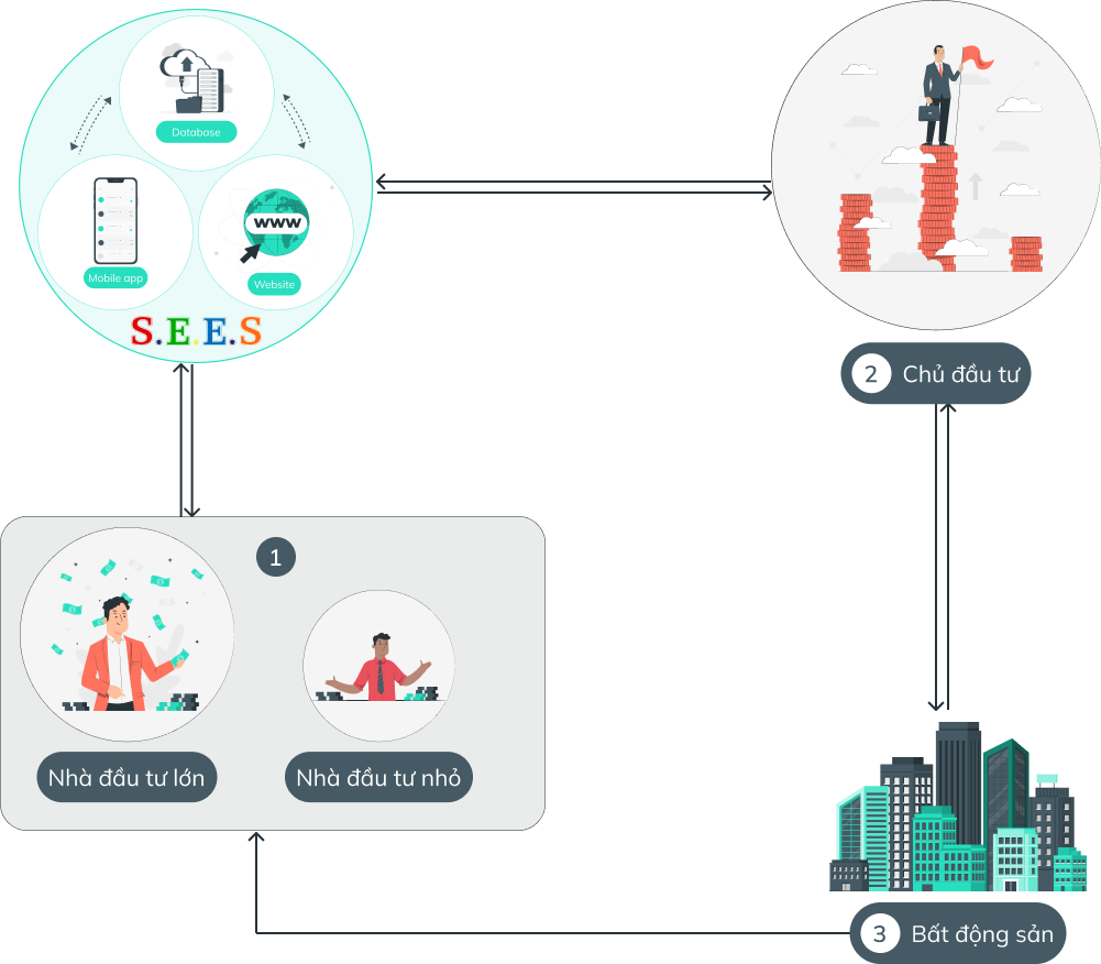 Kết nối các nhà máy sản xuất vật liệu xây dựng hoàn thiện vào một kho hàng chung, phần khác doanh nghiệp quản lý mô hình sẽ tổ chức phát triển kinh doanh để phân phối hàng đến các showroom trực thuộc hoặc nhượng quyền, các đại lý online (là tài khoản khách hàng trên APP) có thể đặt hàng về kho tổng, để chuyển