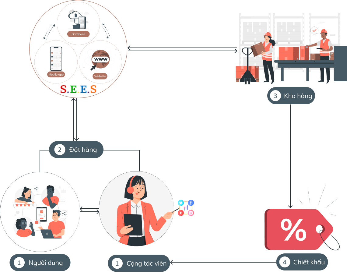 người tiêu dùng có thể mua hàng, còn cộng tác viên thì có thể bán hàng online thông qua 3